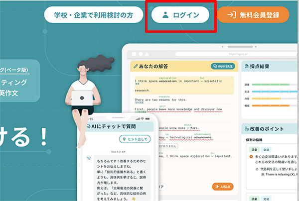 UGUIS.AIは、20年以上の英語試験開発ノウハウを持つ専門企業が作った、AI英語添削サービスです。